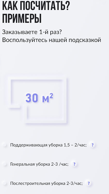 ⁃ No need to carry on long negotiations in chats with cleaners, go to the application, select the number of hours and pay for the order