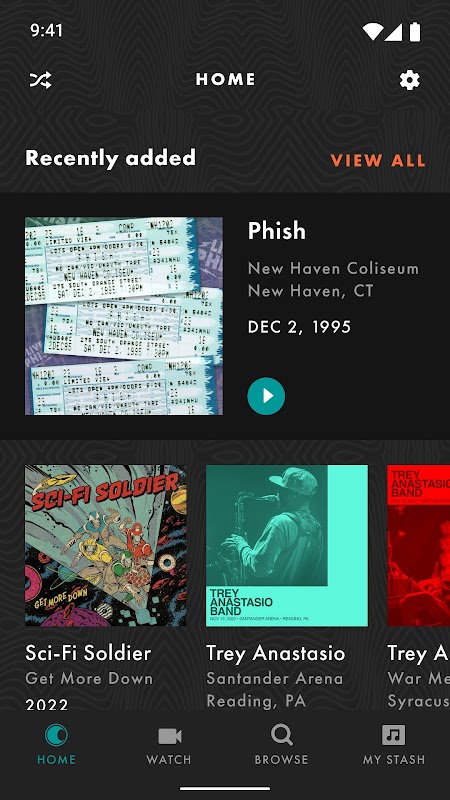 Non-subscribers can stream regularly rotating Featured Shows and stream everything in their LivePhish Stash. Redeem your concert ticket to stream the latest shows from current tours or sign up for LivePhish+ within the app.