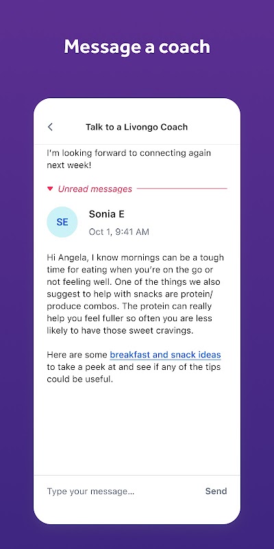Reach out to our expert coaches anytime. They can help you with healthy eating, activity, stress, medications, and more.