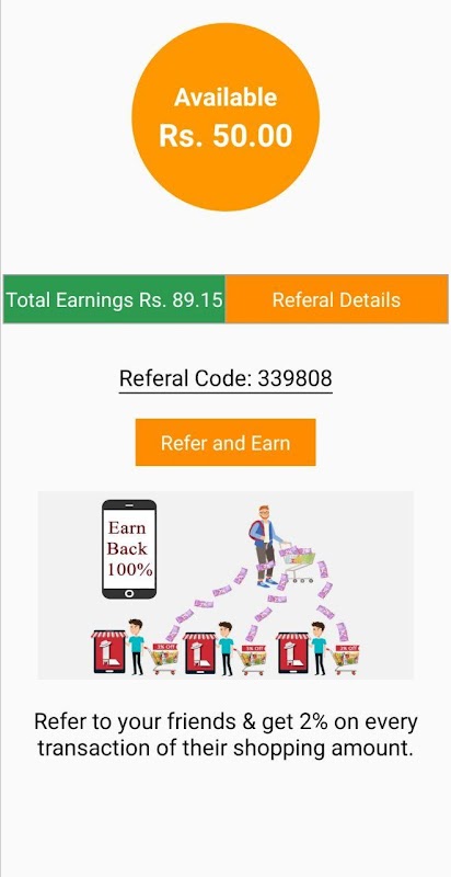 :: Refer & Earn: Refer to your friends and get 2% of their shopping amount every time.