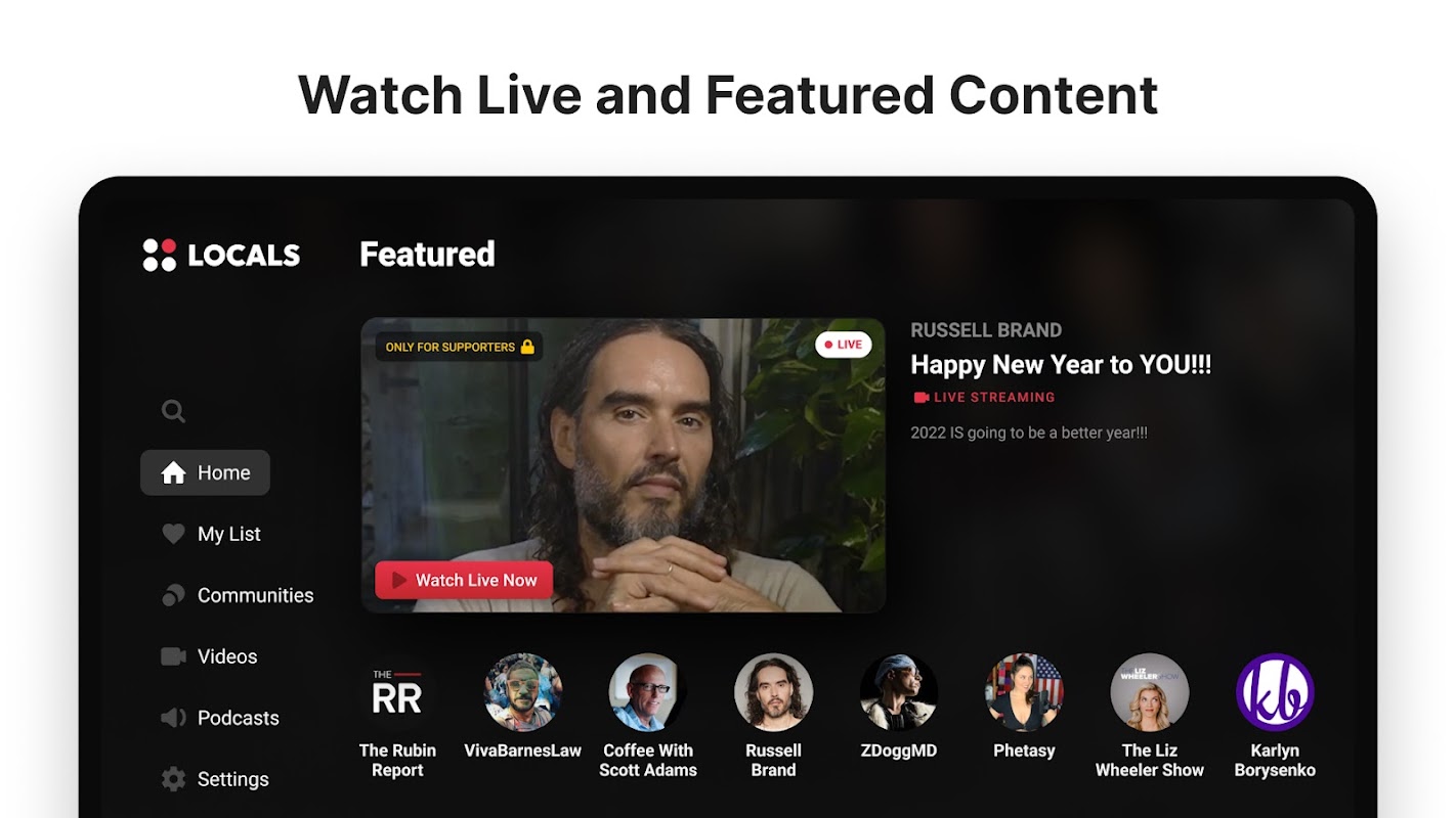 The LocalsTV app provides direct access to your favorite creator videos and podcasts. Watch and listen to content on the big screen and easily navigate between content and community video and podcast offerings. LocalsTV allows you to preview content before purchasing, as well as view free content across multiple communities and creators. Save your favorite content to view later in My List and use the Search functionality to find specific videos and podcasts.