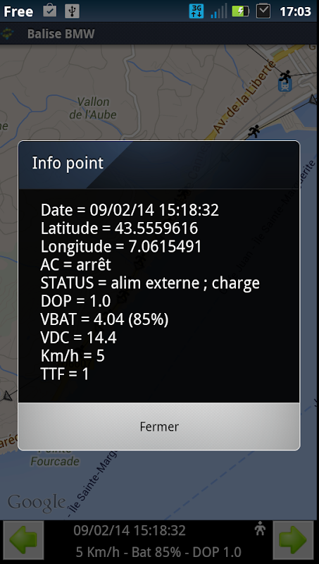 - les derniers points de la balise avec rafraîchissement automatiquement, et