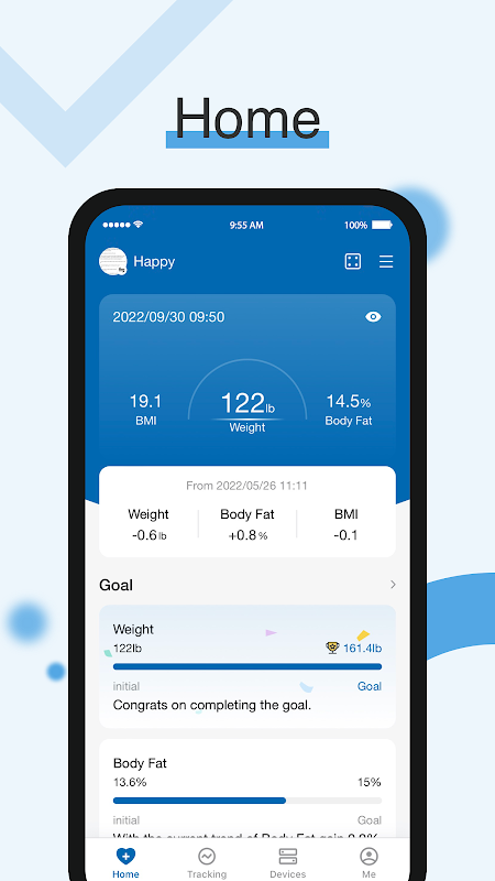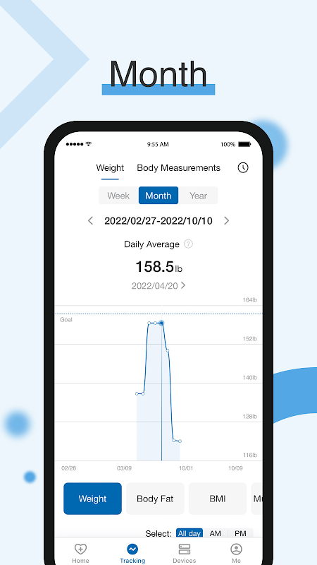 Your weight and your body composition data are your personal information. We treat your privacy with priority. Only you can access your data, and only you can decide how to share your data with others.