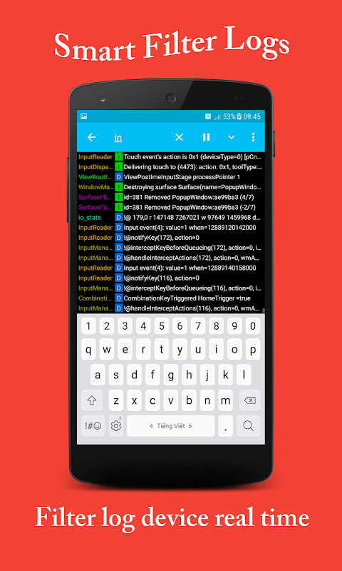 * You can custom view log with setting as: text size, color, display limit number line log ...