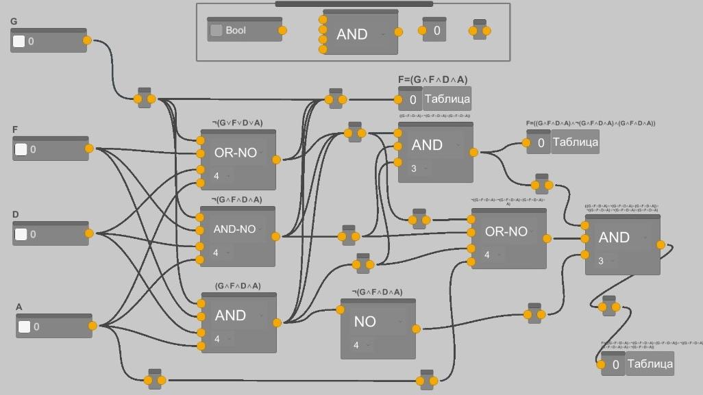 The conclusion of the program, its completion is the truth table.