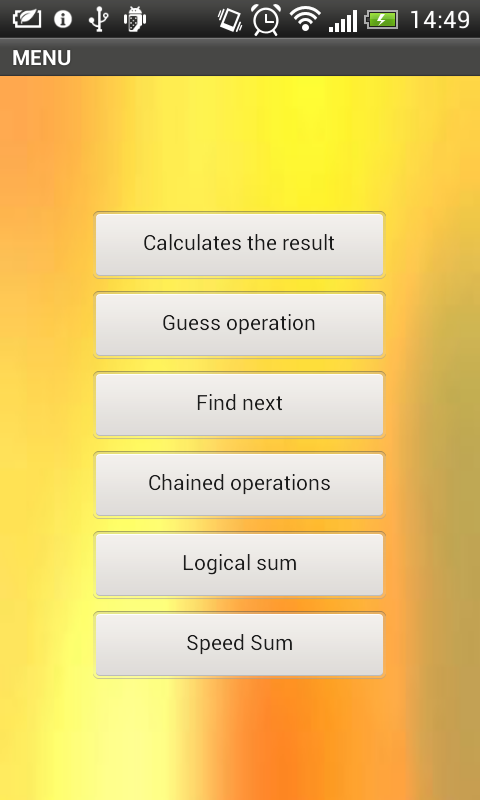 - Speed sum. Some numbers will appear for a few seconds. You have to add each and put the result of the sum when they disappear