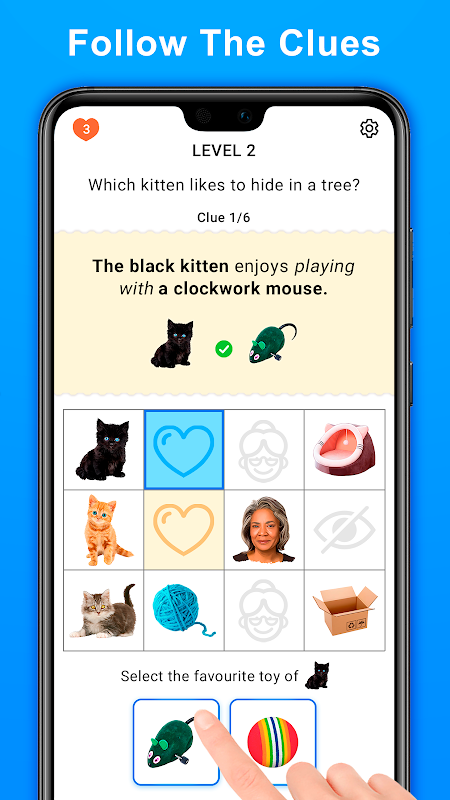 Engage your brain and have fun at the same time! The rules of Logic Quests are quite simple. Use clues to find facts connections, solve logical mysteries and complete levels to win in a brain game. Sounds easy, right?