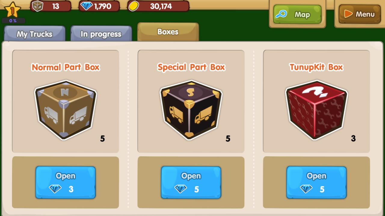 • Truck attributes can be upgraded using parts..