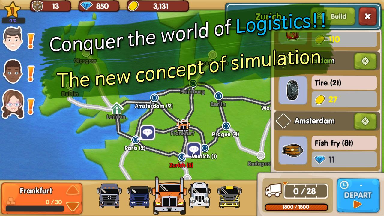 Become the owner of a logistics company delivering friendly and precise service to cities around the world.