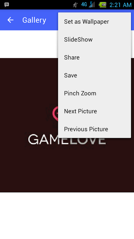 - There is a slideshow feature, share, save, set as wallpaper and others