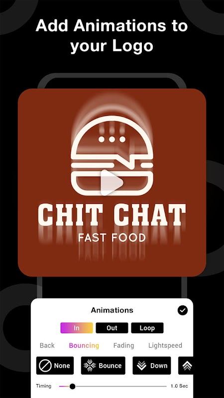 ⦁ Animated Logos: Create stunning logos and save as high-quality GIFs.