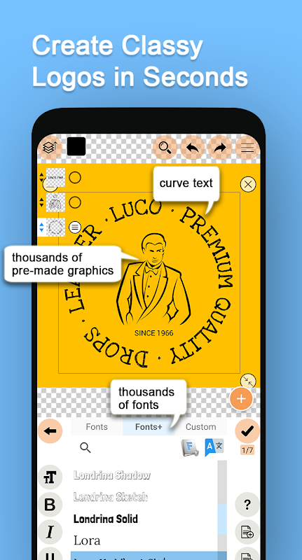 As the most complete logo designer for a business logo or just for your social media logo, Logo Maker Plus solves all your problems in one compact app. The most inspirational tools to design a logo + all other social media posts is at your service.