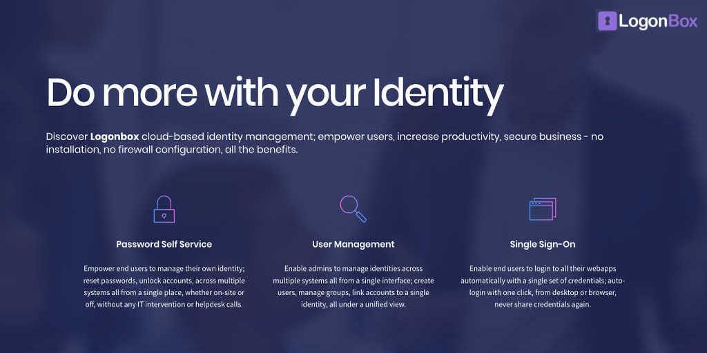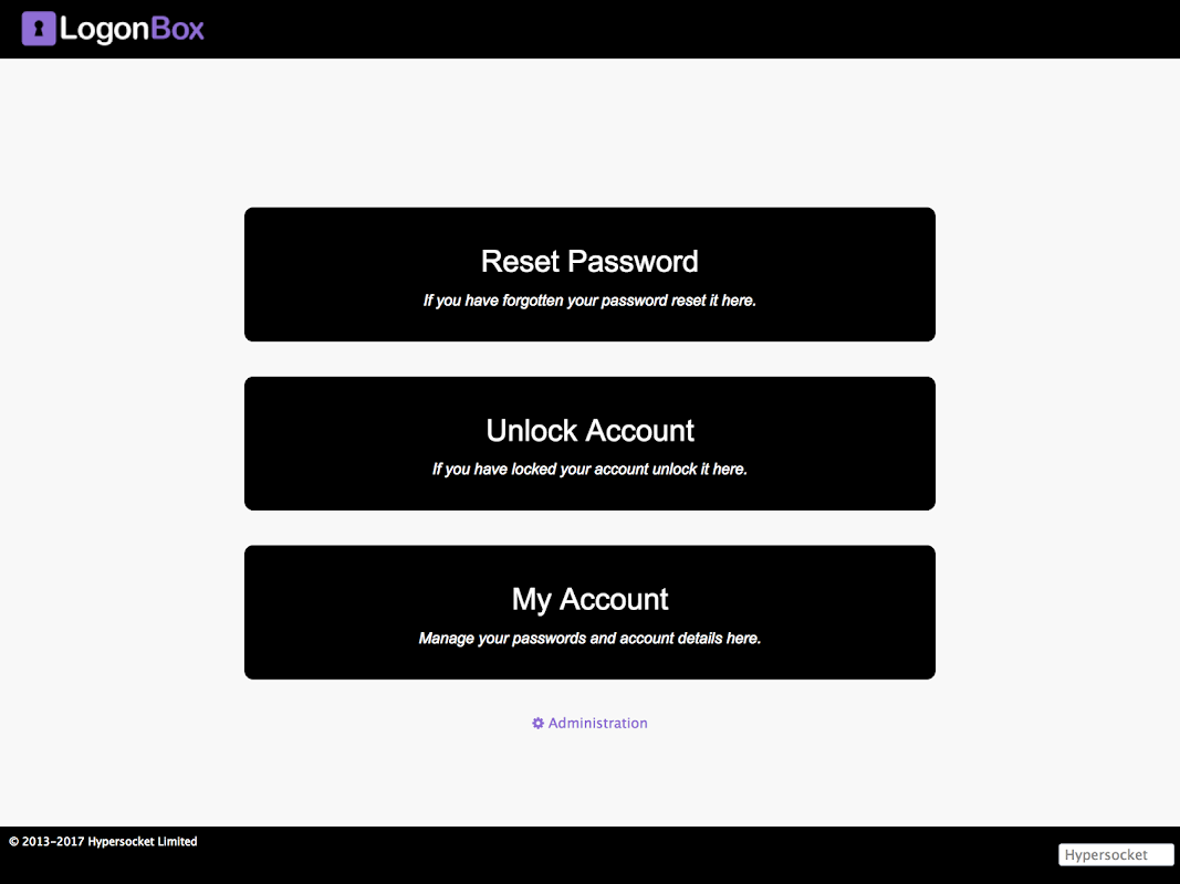 LogonBox Android app empowers end-users to manage their corporate identities remotely through an intuitive mobile interface. Whether you have forgotten your password on Active Directory, Linux, Google Apps or any other system your account can be unlocked while on the move with this app.