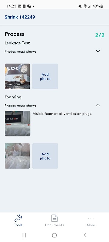 - The documentation is delivered by the likes of QR-scan for batch information, photo documentation, alarm wire measurements with validation, manual checks, and much more.