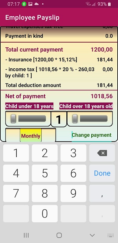 A payslip will be created for you, your input is accepted as the gross salary and assessment basis, after calculating the deductions you have the net salary. With each deduction calculation you can see an info line how it was calculated.