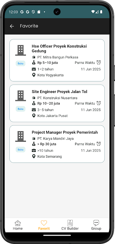 - Smarter Search: Find your ideal job quickly and efficiently. Use the intuitive search feature based on specific keywords (e.g., "Project Manager Jakarta", "Drafter AutoCAD Surabaya"), your dream company name, or your desired geographic location.