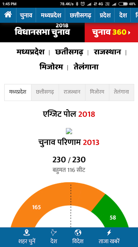 राजस्थान, मध्यप्रदेश, छत्तीसगढ़, मिजोरम, तेलंगाना चुनाव नतीजे 11 दिसम्बर 2018 लाइव अपडेट्स