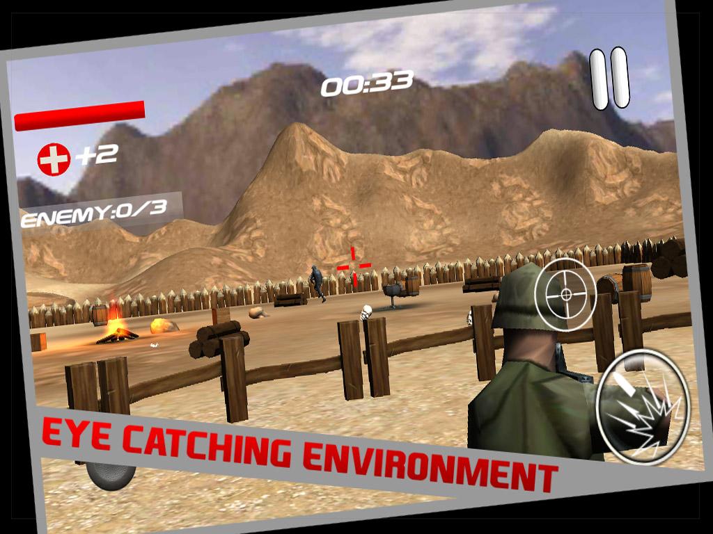 Lets face this challenge, Enemy is invading, You are the Lone Survivor Commando. Don't worry about emo, concentrate on the coming enemy, shoot them to get your positions back. If you love shooting games, then this 3rd person shooting game is the ultimate fun. move left, right, forward, backward. position your aim, find the enemy hiding in bunkers and shoot them.It is the test of your long training, your shooting skills, your stamina and temperament. This games provided your dream shooting environment of city where enemy has advantage of army bunkers, setup in the main street of the city.