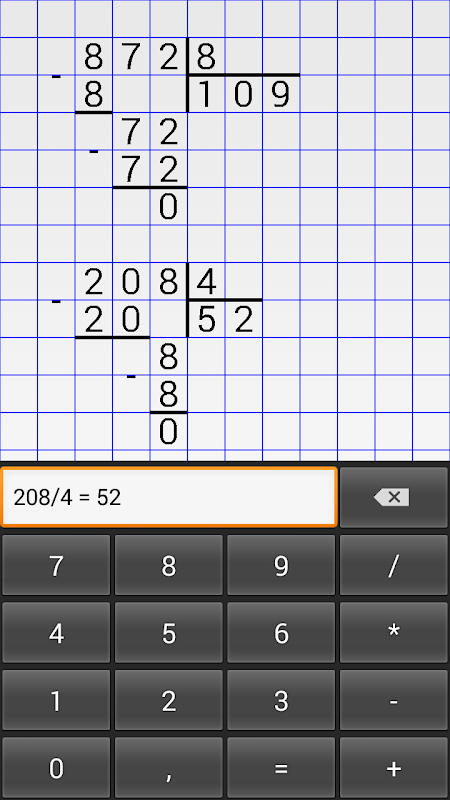 Download calculator "Long Division Calc" and check all arithmetic operations:
