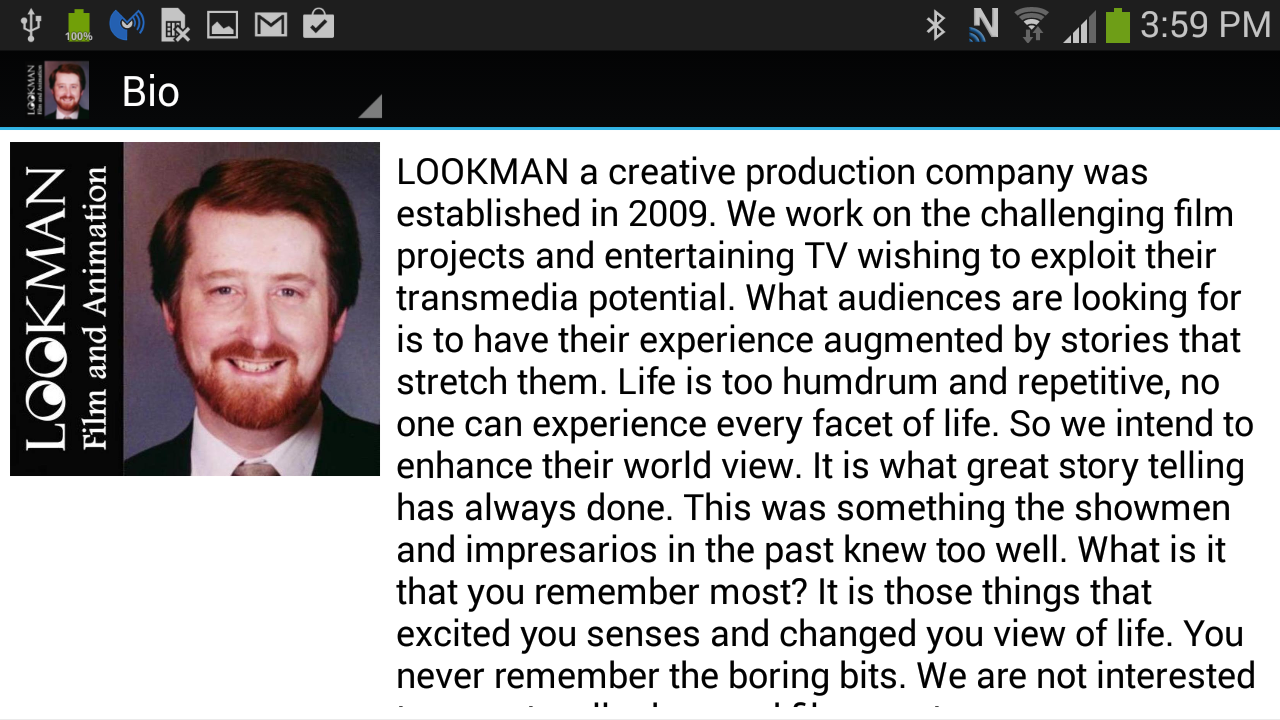 LOOKMAN a creative production company was established in 2009. We work on the challenging film projects and entertaining TV wishing to exploit their transmedia potential. What audiences are looking for is to have their experience augmented by stories that stretch them. Life is too humdrum and repetitive, no one can experience every facet of life. So we intend to enhance their world view. It is what great story telling has always done. This was something the showmen and impresarios in the past knew too well. What is it that you remember most? It is those things that excited you senses and changed you view of life. You never remember the boring bits. We are not interested to repeat well rehearsed film montages.