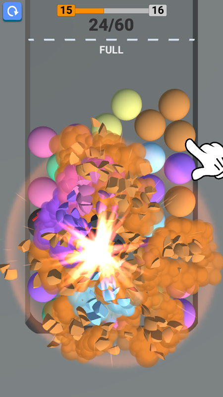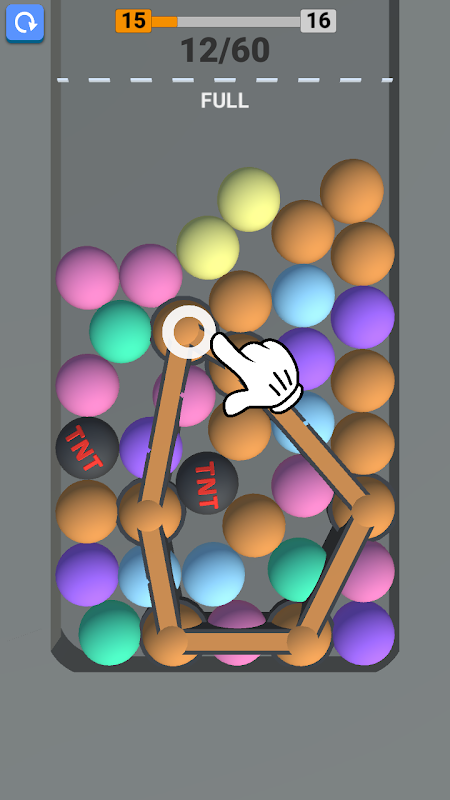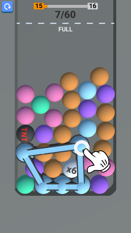 Tap on same color balls to make a loop to crush them! Include TNT inside the loop, but avoid multipliers.
