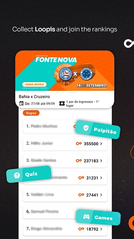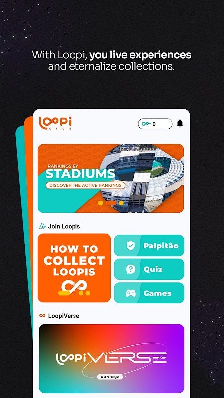 Earn points with games, predictions, and quiz questions, accumulate Loopis, and redeem them for VIP experiences such as matches and concerts in Brazil and around the world.
