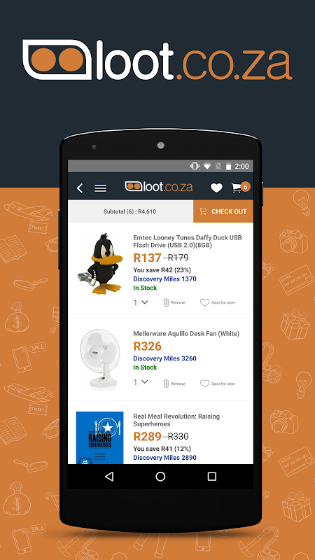 Get the best deals on books, movies, home electronics, smartphones, homeware, kitchen appliances, DIY, outdoor, garden, arts & crafts, toys, baby, health & beauty and so much more when you shop online at loot.co.za. With over 17 million products across 17 categories you will find exactly what you’re looking for. Add to this, 13 safe and secure payment methods and you have convenience, security and happiness all tied into one app.