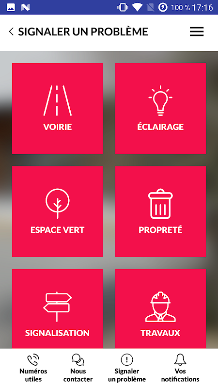- Report a problem to your town hall by sending geolocated photos: roads, street lighting, green space, cleanliness, signage, work, parking ...