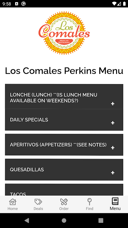 Mobile ordering for Los Comales