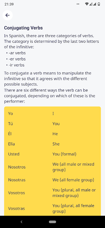 Learn and practice Spanish verbs conjugation with our free offline trainer