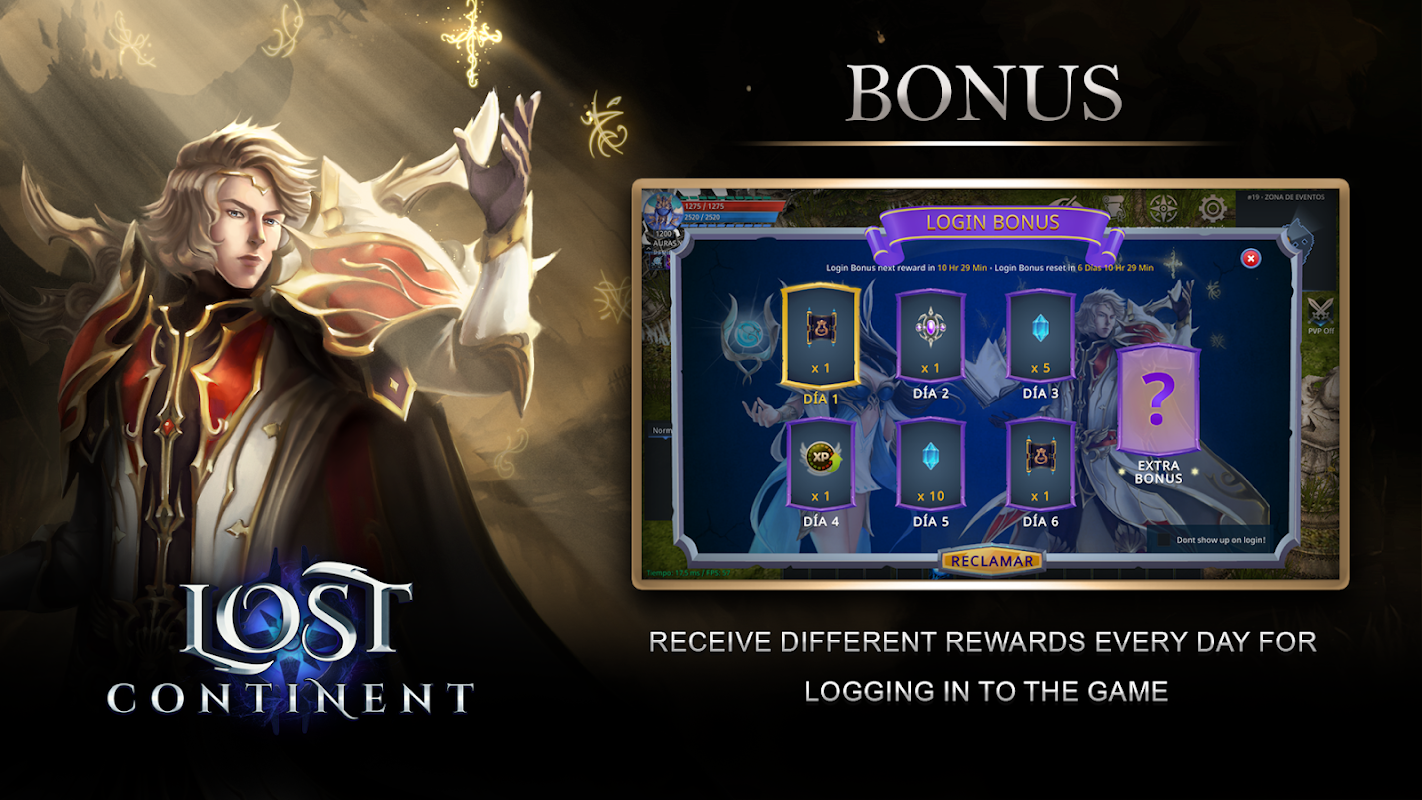Level up, learn new abilities, increase your attributes and equip your character to conquer every single one of the +50 different maps in the Lost Continent world. Defeat all the monsters that will try to get in your way to victory, and complete the daily missions specially designed to boost your level up and improve your in-game experience