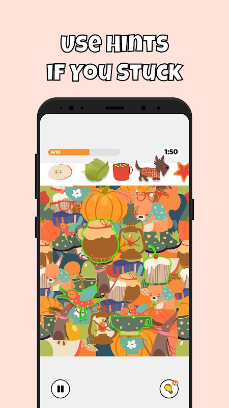 ● Lively scenes to search from top to bottom for hidden objects