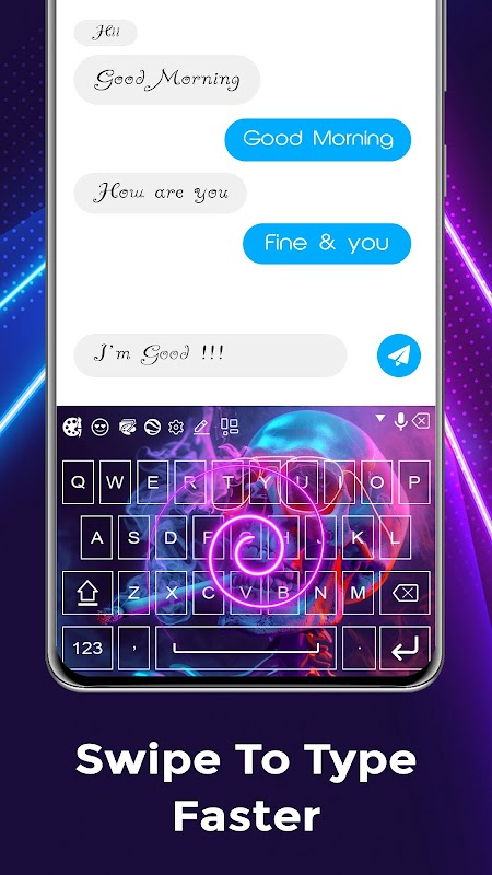 Welcome to the vibrant world of the Neon LED Keyboard to illuminate your typing experience! Transform your typing with fancy Keyboard, a stylish and vibrant led keyboard app that brings your messages to life. Featuring a wide range of themes and fonts, this cool keyboard app allows you to customize your Diy keyboard with colorful neon text effects and animated keyboard backgrounds. Love keyboard neon theme is free keyboard themes app optimized for performance. Whether you're chatting on social media or composing a text, the RGB Keyboard ensures a smooth and responsive typing experience.