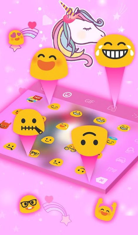This stylish keyboard will also turn a plain keyboard into a pretty and unique one. Your keyboard looks totally different with this colorful keyboard. Download this keyboard theme and try it out! Pink unicorn keyboard theme only works with Touchpal keyboard installed on your phone.