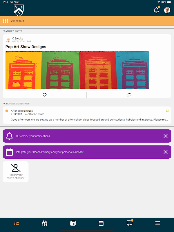• View messages for personalised communication about your child or class