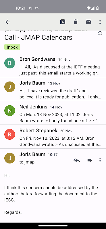 · No settings aside from account setup. Settings invite feature creep and make the app hard to maintain. Ltt.rs aims to support one specific work flow. Users who desire a different work flow may find K-9 Mail or FairEmail more suitable.