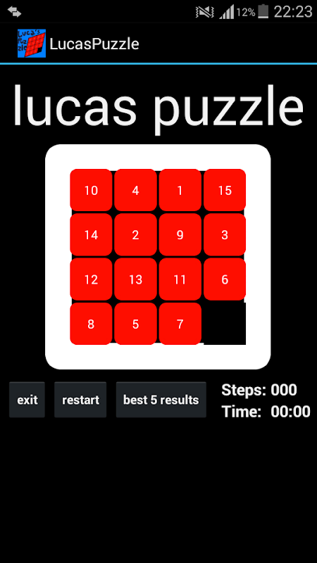Classic game of puzzle boxes movable ; starting from a provision of boxes randomly generated complete the ordered sequence of numbers in the shortest possible time and with the least possible number of movements.