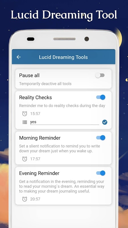 ★ Evening reminder: Reminder in the evening to read your morning dream in the journal. An essential way to keep track of your dreams.