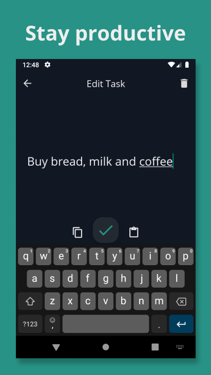 Note: Your tasks get deleted if you uninstall the app or clear it's data. No data is passed on to us.