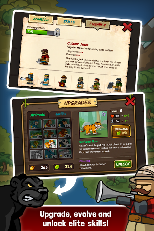 Team up fierce animals and defend the forest against vicious tree-cutters!