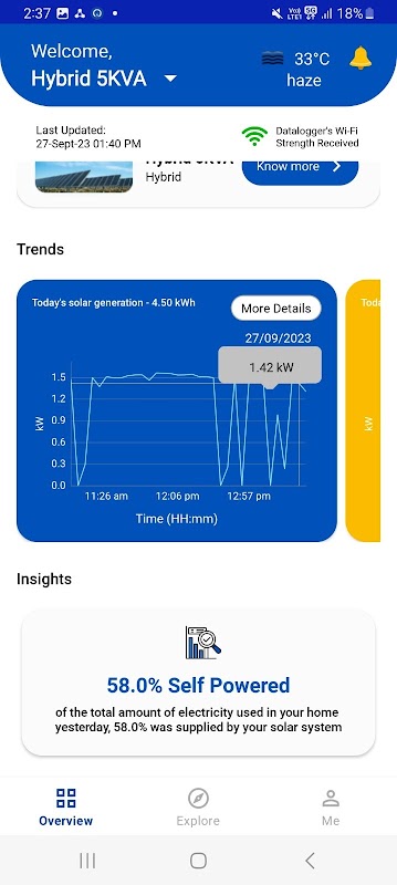 - **Trends and Insights:** Delve into historical data with trends for solar generation, home consumption, and power cuts. Gain a comprehensive understanding of how solar energy powers your home.