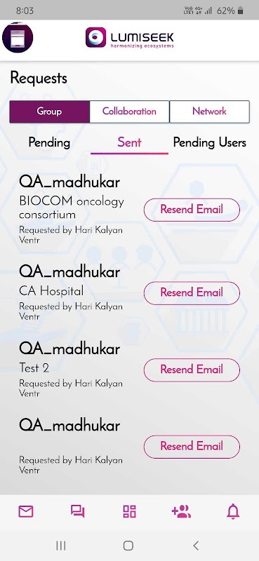 Lumiseek mobile app allows users to login to their Lumiseek account where they can see all their latest updates that occurred from the web app. Users will be able to go and view their forum discussions and also participate in them through the app in the message boards section. All conversations that have the user as a participants can be seen on the app and user will also be able to send messages to the respective chats in the conversations section. A user has multiple roles to handle and the app allows the user to manage their roles by providing them with the latest requests they receives and also provides with further operations on the particular request. The app has notifications sections which gives a collection of the recent activities with the user and allows user to navigate to that particular activity.