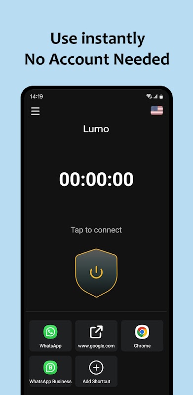 Lumo VPN is a lightning-fast free VPN service that guarantees your online privacy and security. No setup required. Just tap a button and you can access the internet safely and anonymously in seconds.