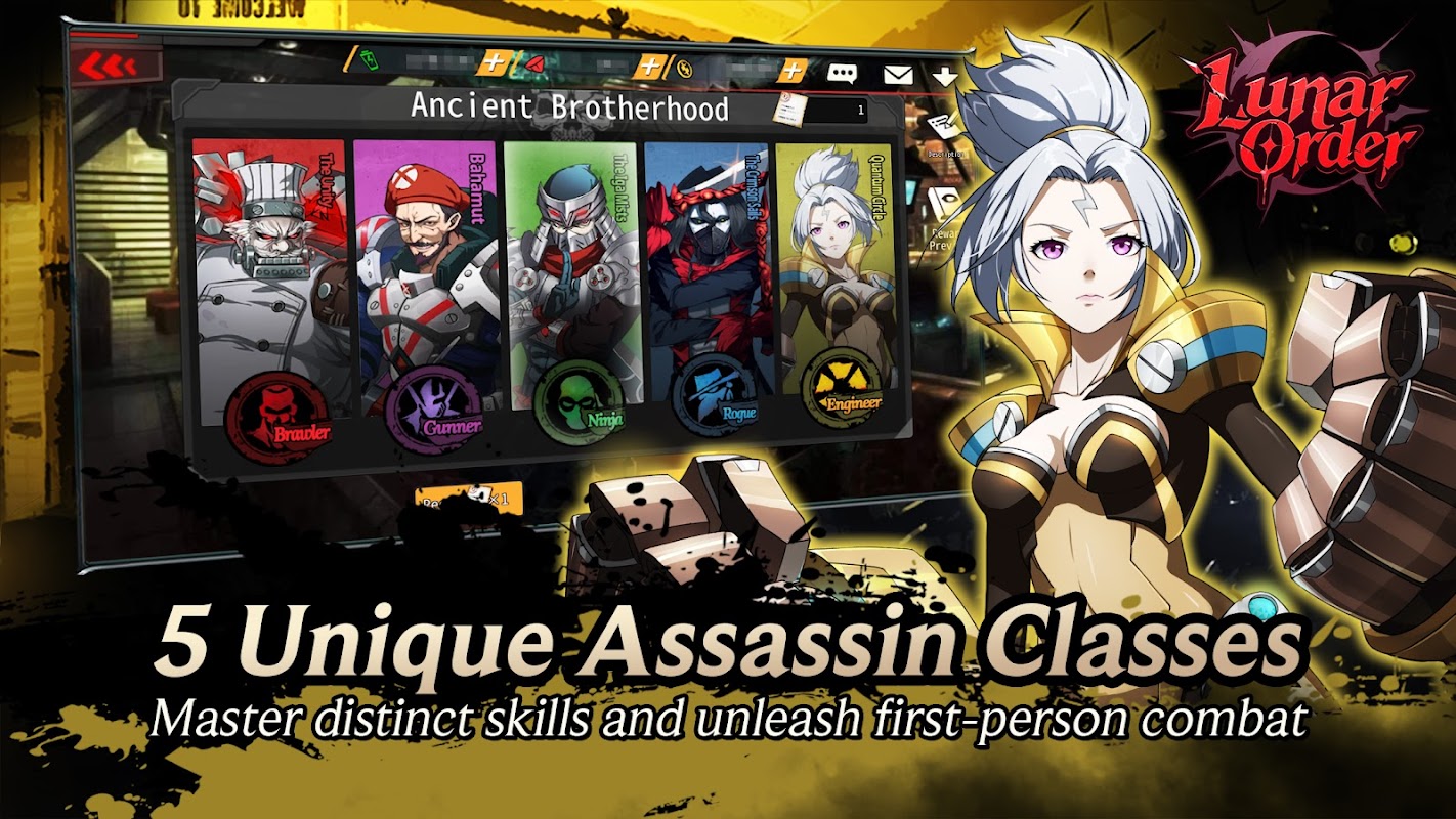 Lunar Order is a hardcore 3D collectible action RPG that combines real-time combat, strategic builds, and a dark assassin world.