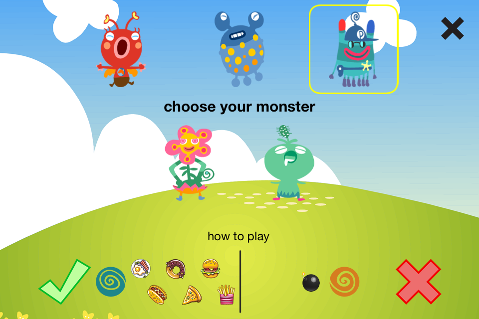 Choose from 5 different monster characters and discover power ups and penalties that keep this game interesting every time you play.