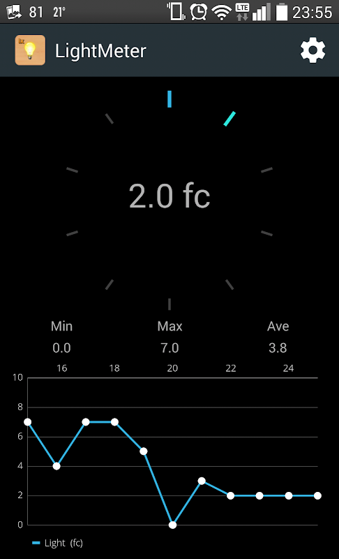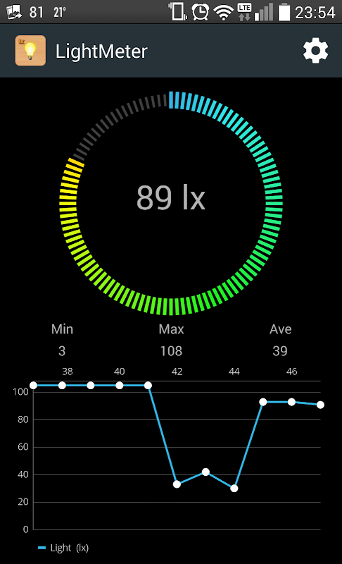 Lux Meter is a simple light meter for measuring illuminances (lux, fc) by using the light sensor of your android device.