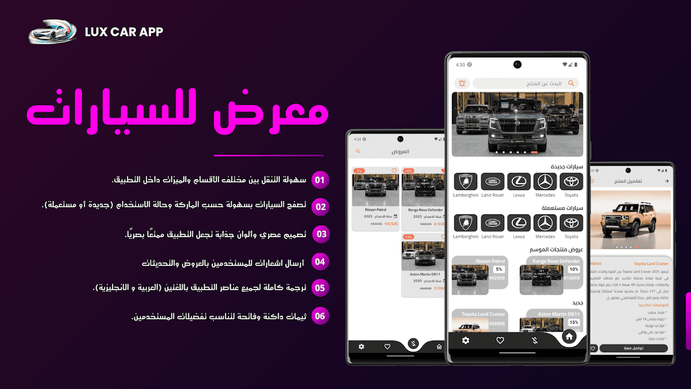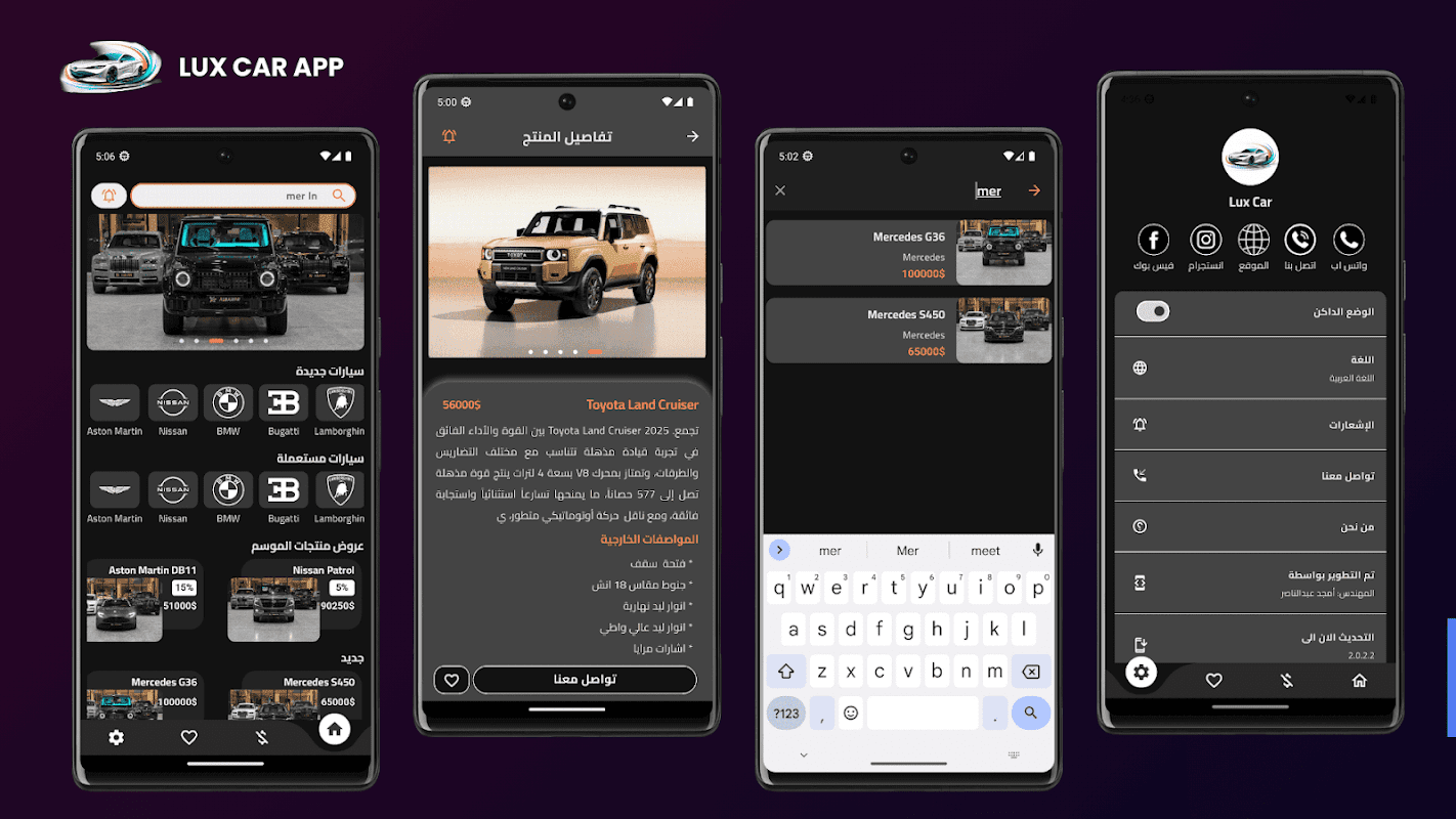 We offer you a smooth user experience and a simple design that allows you to easily browse cars, know their details and prices, and communicate directly with the owners without any intermediaries or complications.