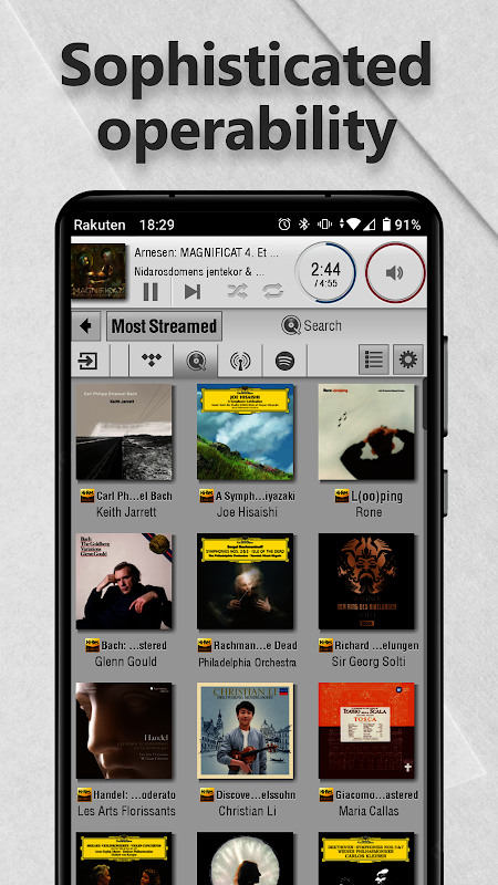 In addition, various sorting (arrangement) settings for the song list, search for song information, artwork image cache function when connecting to a music server, various detailed operation options, etc. Emphasis on operation response that will get used to the more you use it. It is a highly complete application.