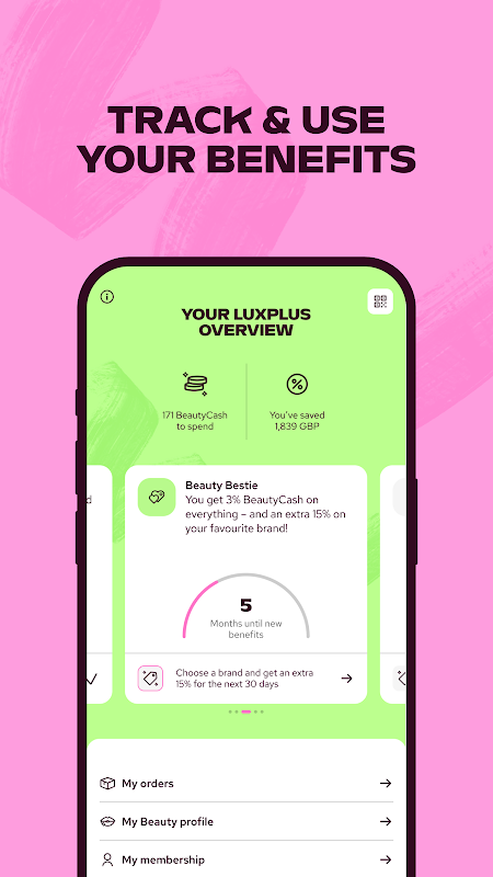 It’s filled with app-exclusive features along with EVERYTHING within your Luxplus membership, like your savings, your BeautyCash – and the brand you want extra discount on this month.