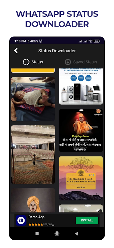- Status Downloader for helps you download Whatsapp photo images, GIF, Video download.